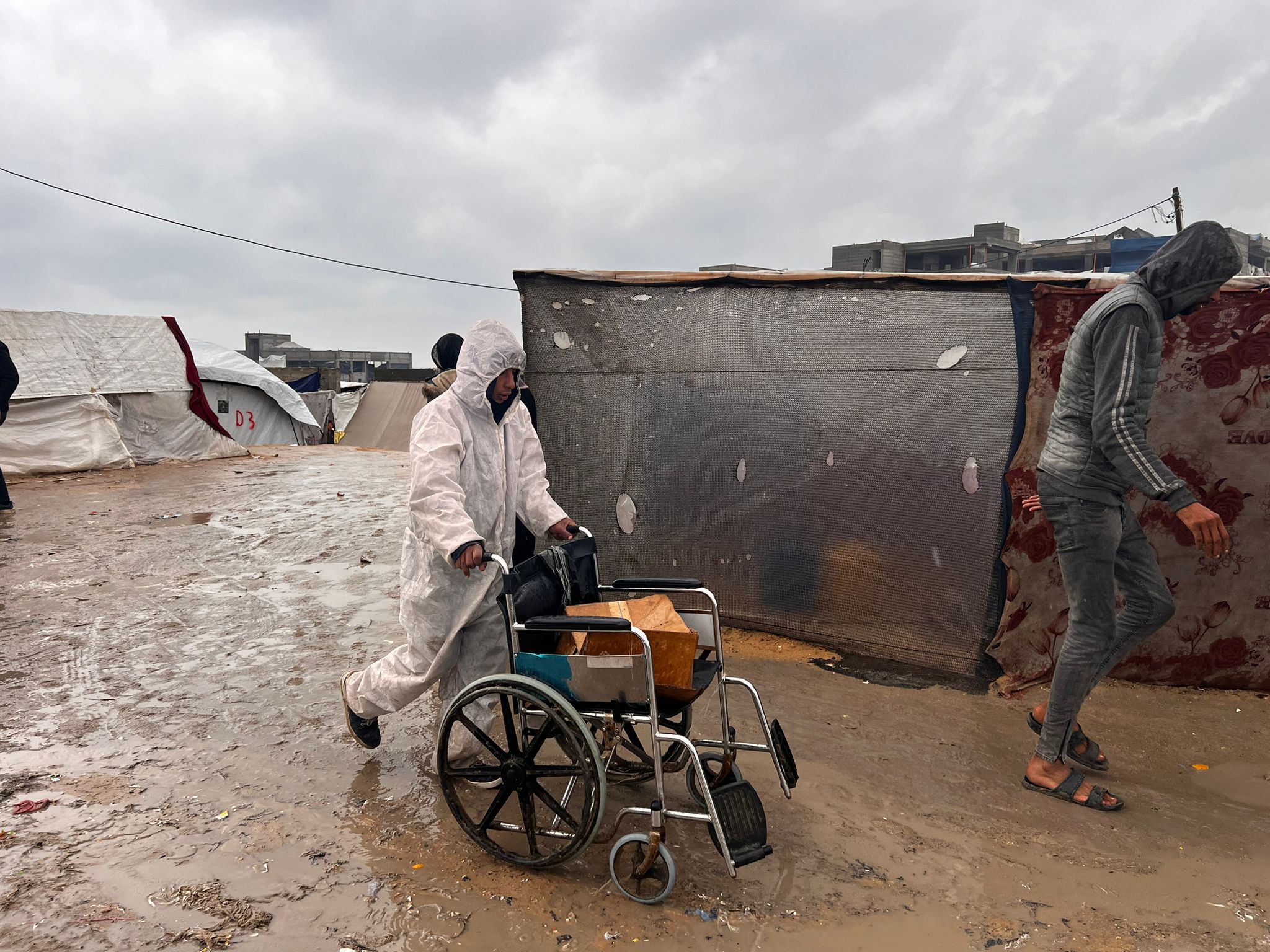 Everywhere, people seem to be wearing the same protective white suits. These are not health workers, immunizing their community from a deadly virus. They are Gazan refugees wearing leftover protective suits to shield themselves from the elements.