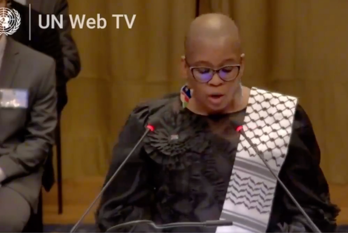 “I stand before you as a representative of a country where Germany brutally carried out the first genocide side of the 20th century against the Herero and the Nama peoples, a country that is known only too well the pain and suffering of occupation, colonialism, systematic discrimination, apartheid and their entrenched consequences.