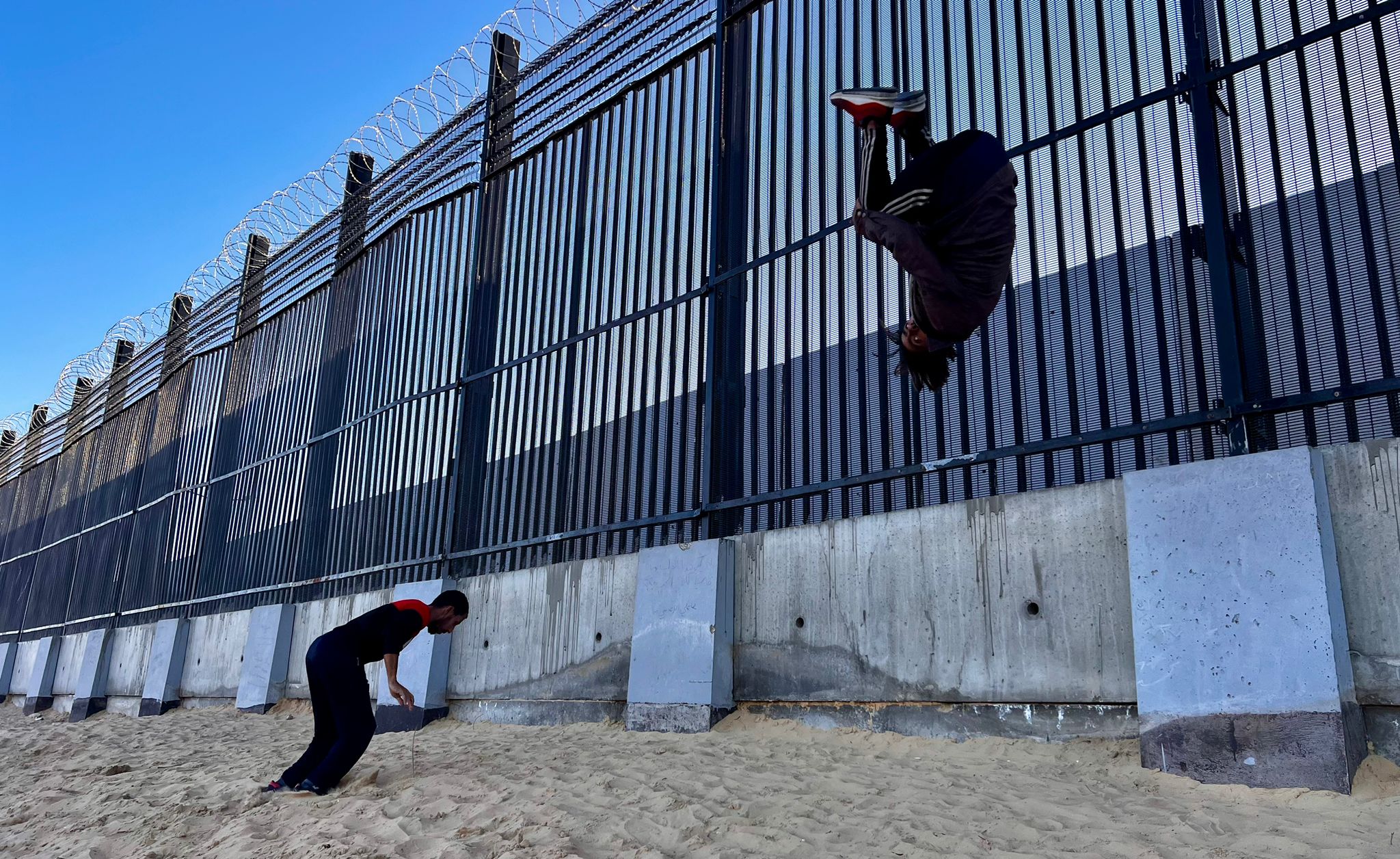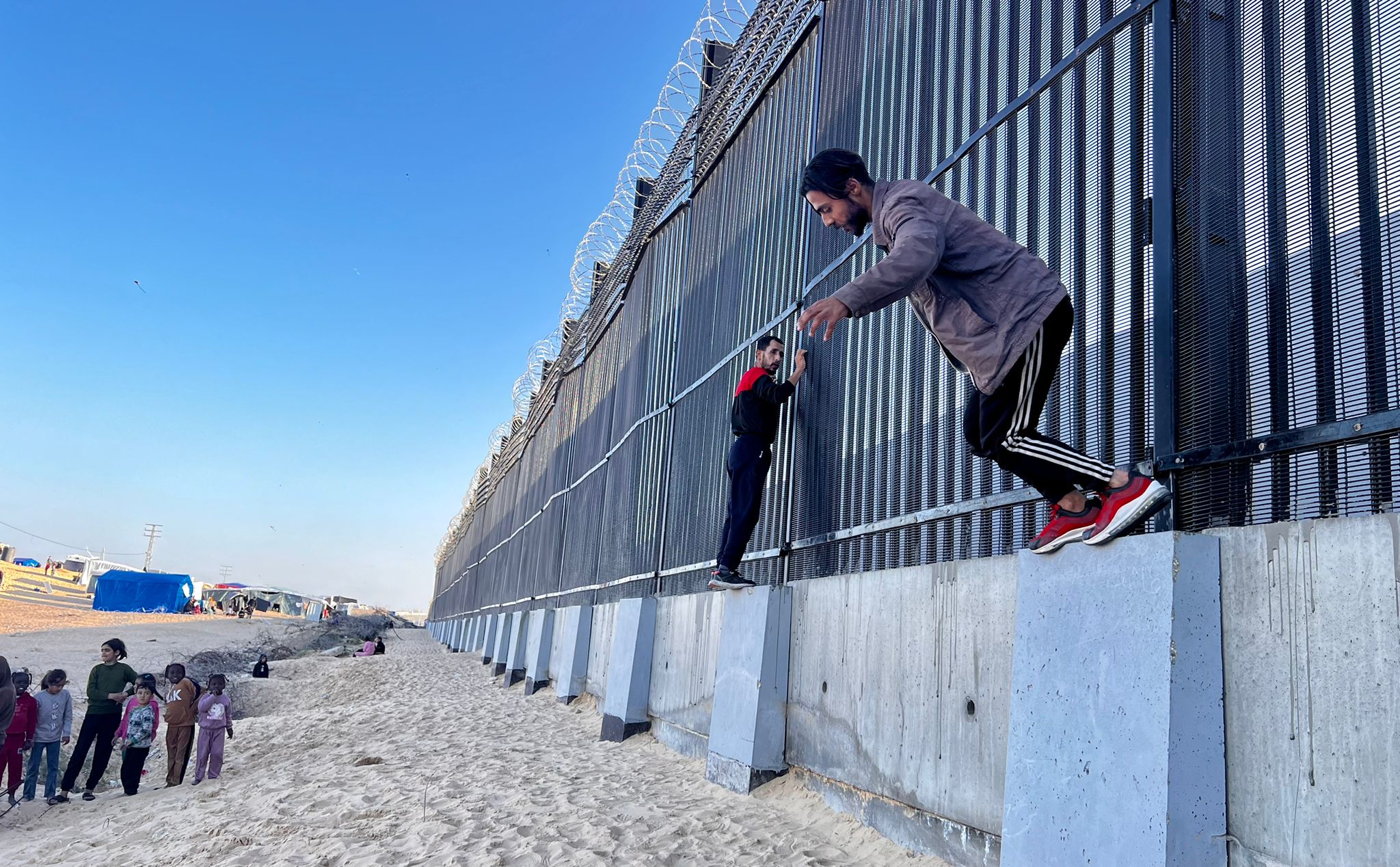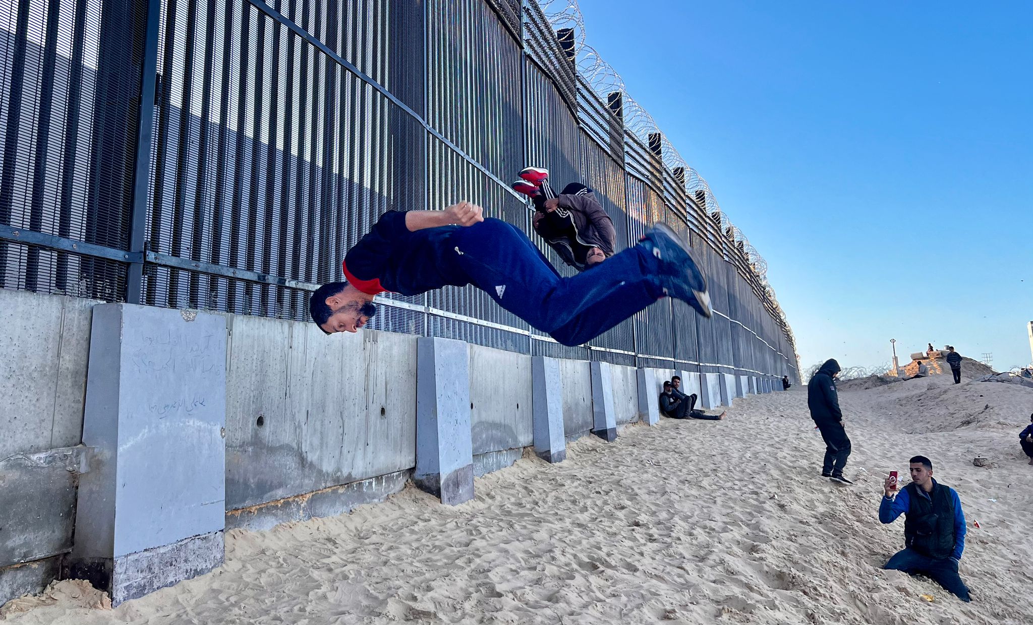 But not for these free runners, who are, like the vast majority of Gaza’s 2.3 million population, displaced at the border between Gaza and Egypt.