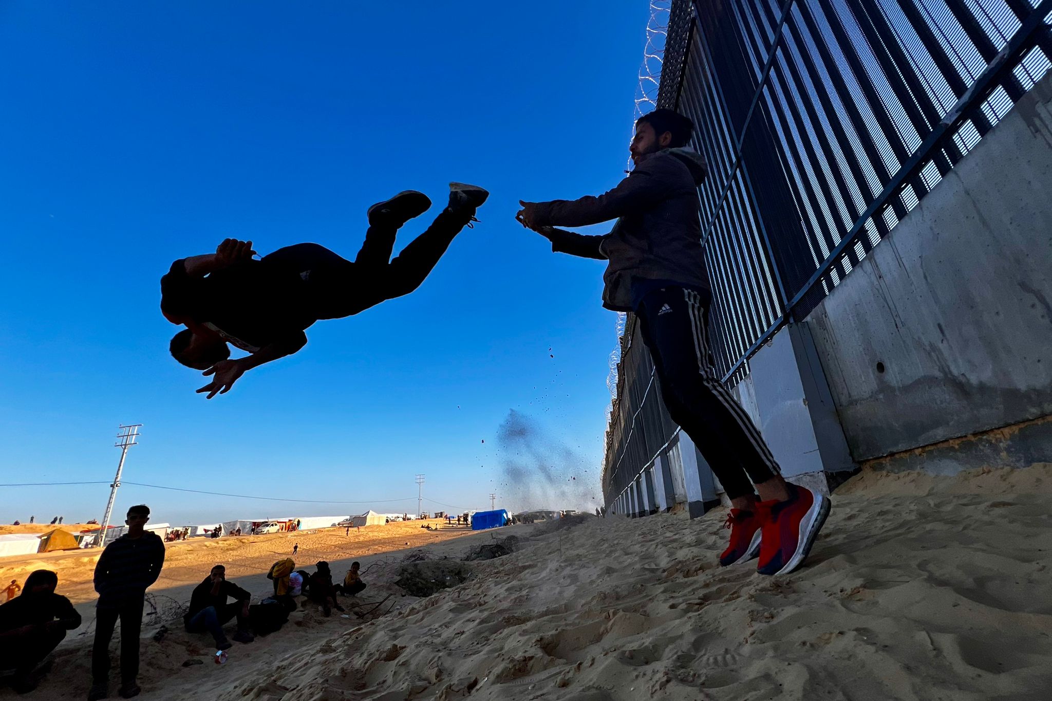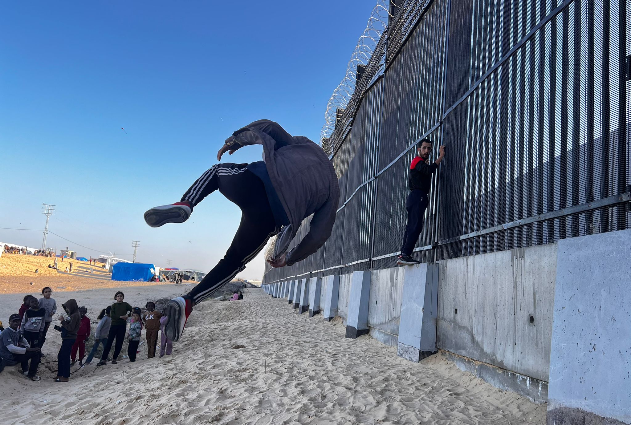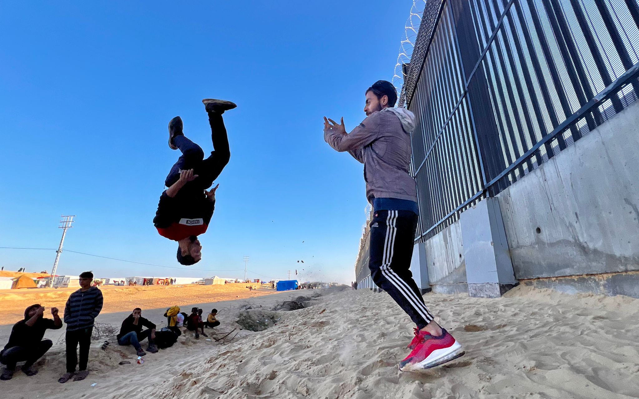These parkourists would not let anything stop them, as they entertained children at the displacement camps in Rafah.