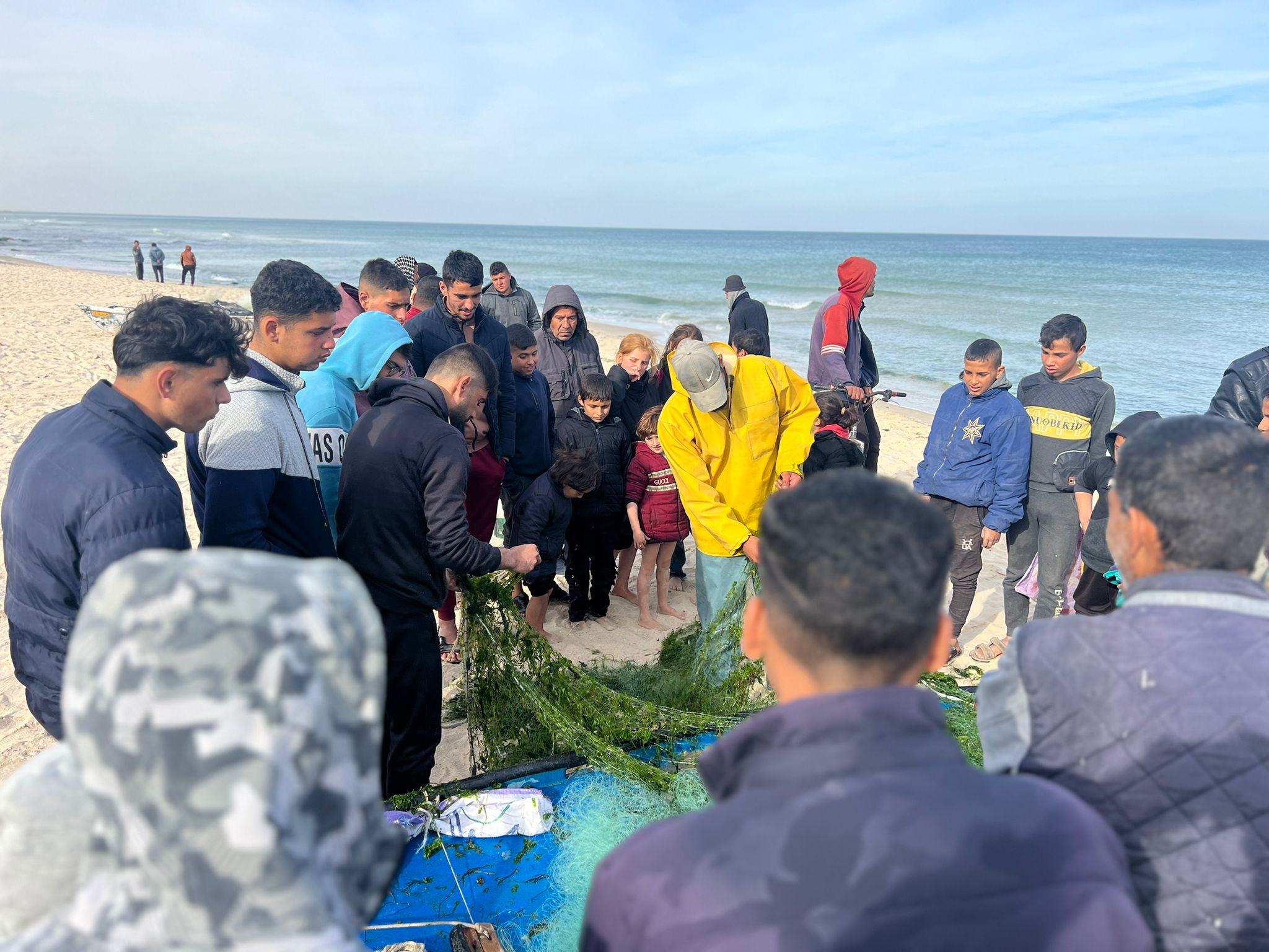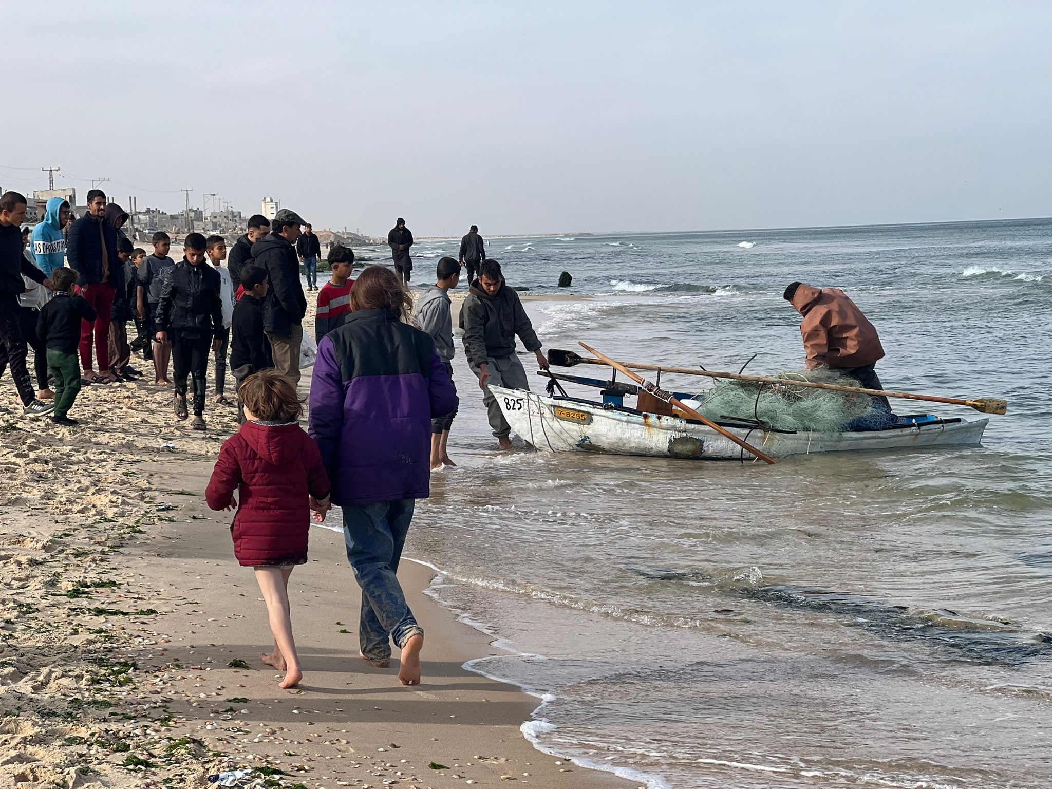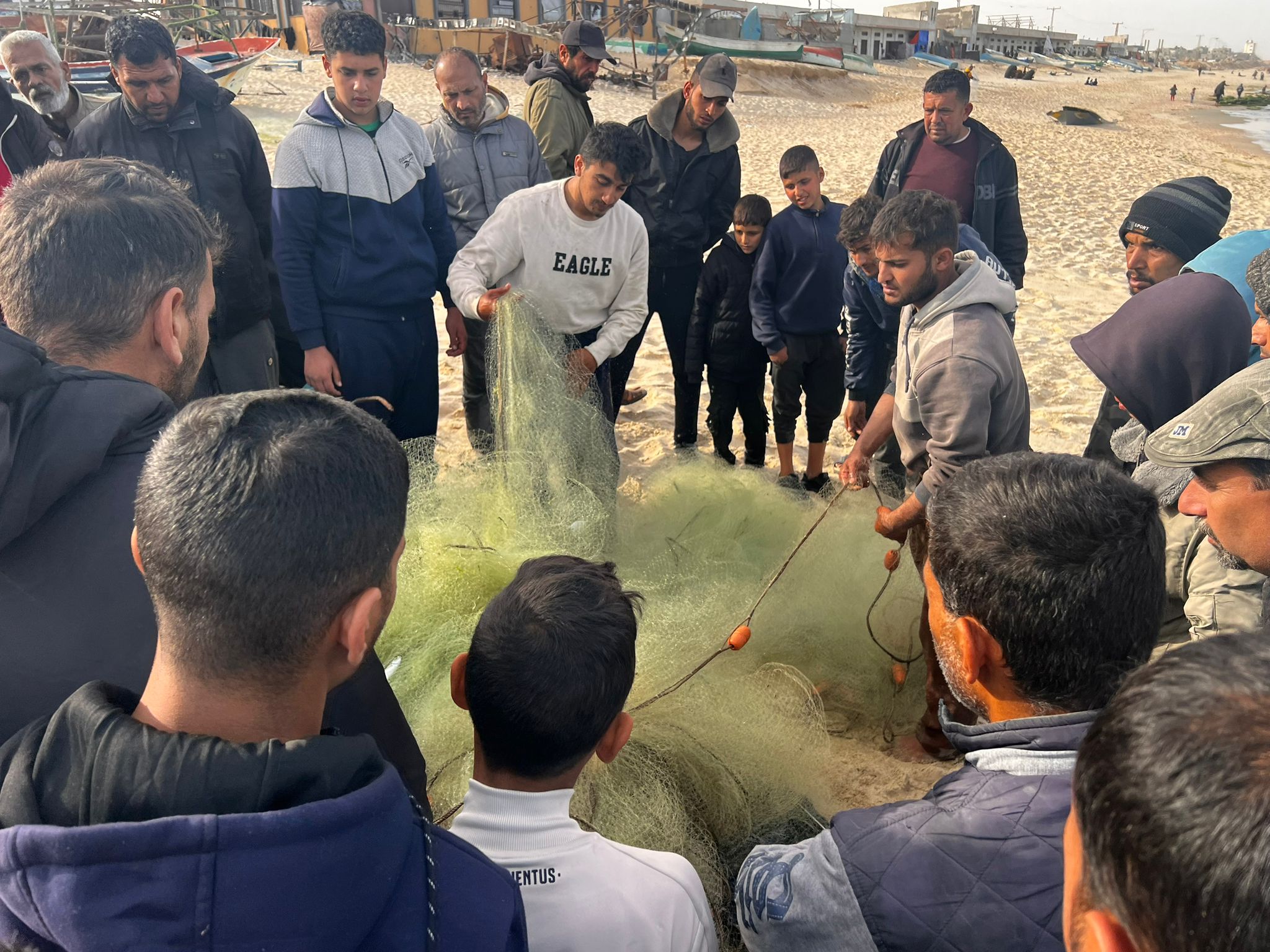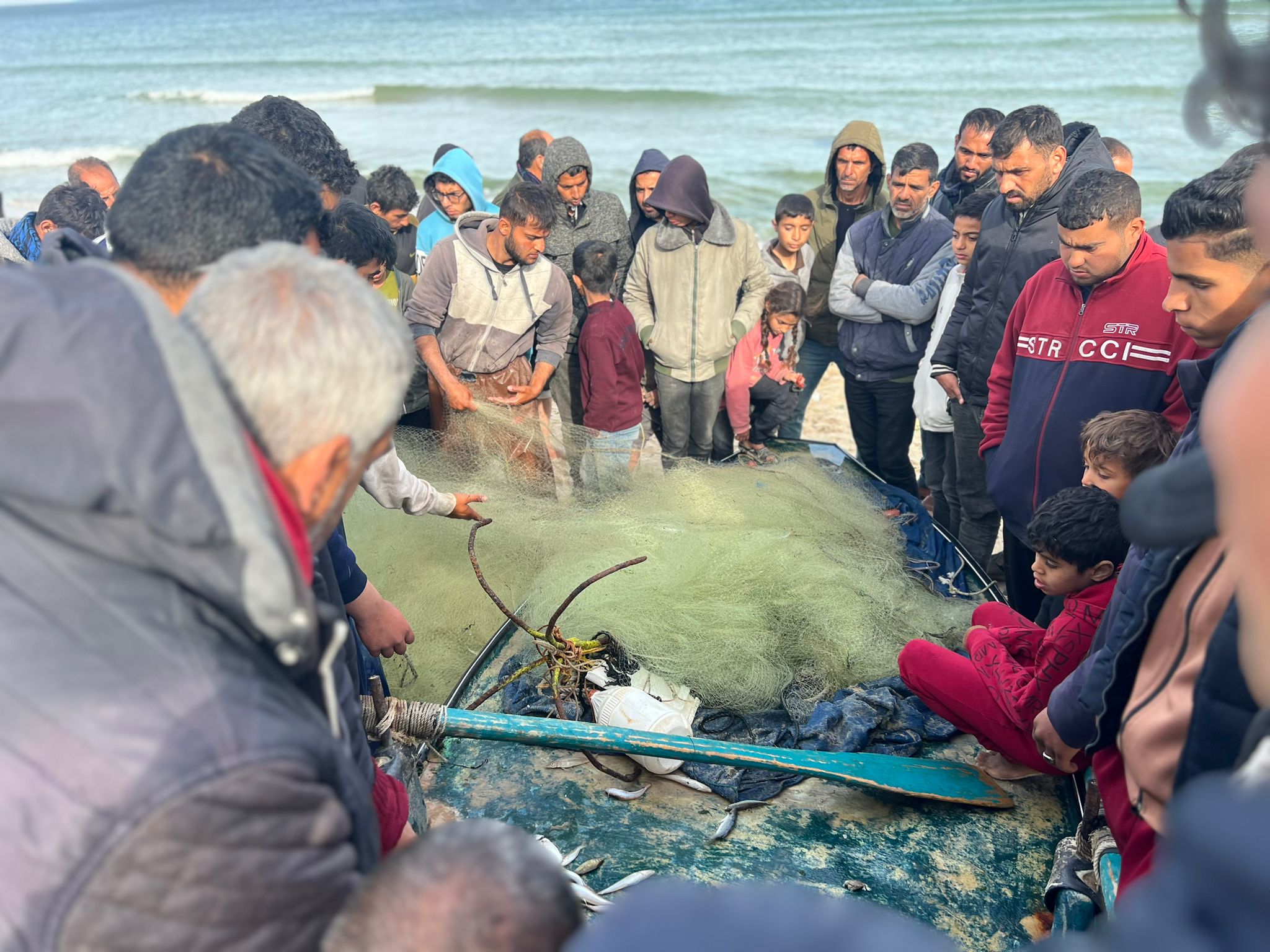 But these two brave fishermen in Rafah took their chances and entered the sea. They couldn’t go far, but returned with some fish, enough to start a bidding war between hungry refugees.