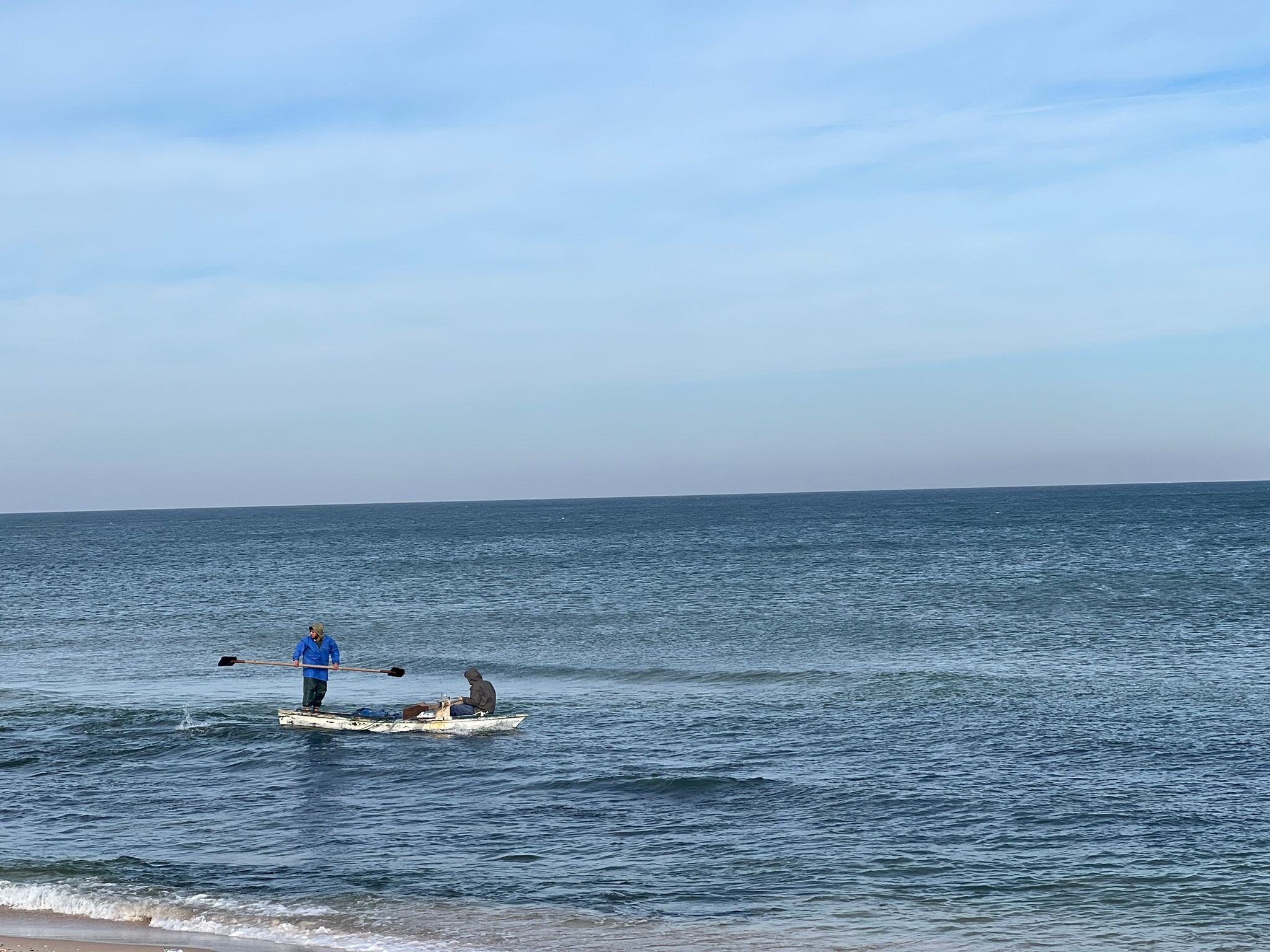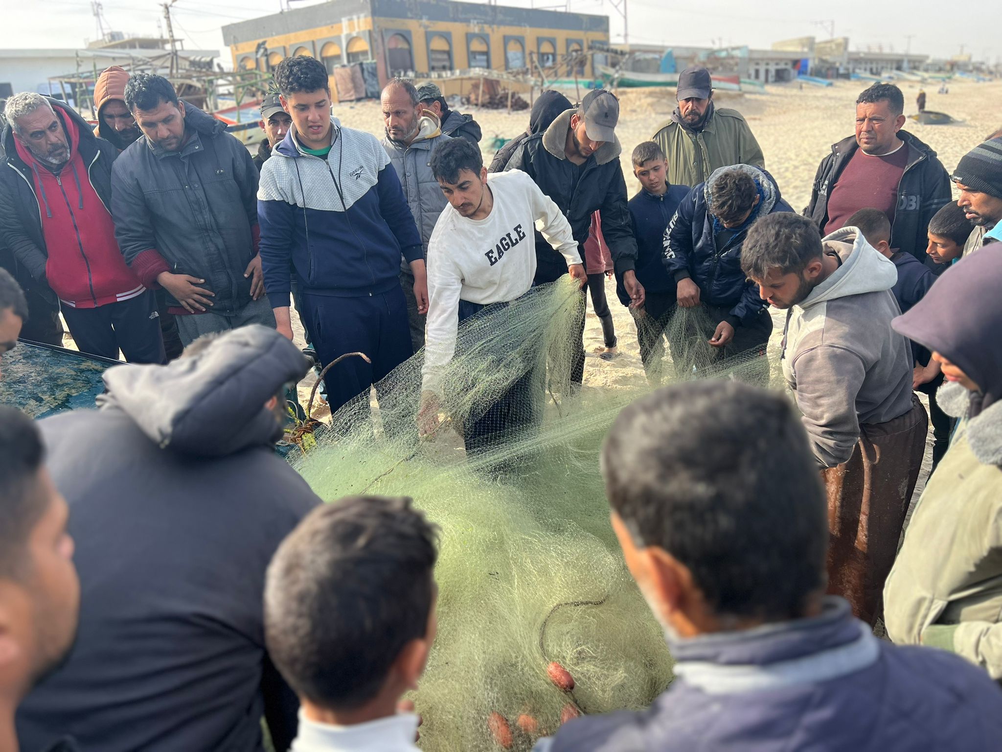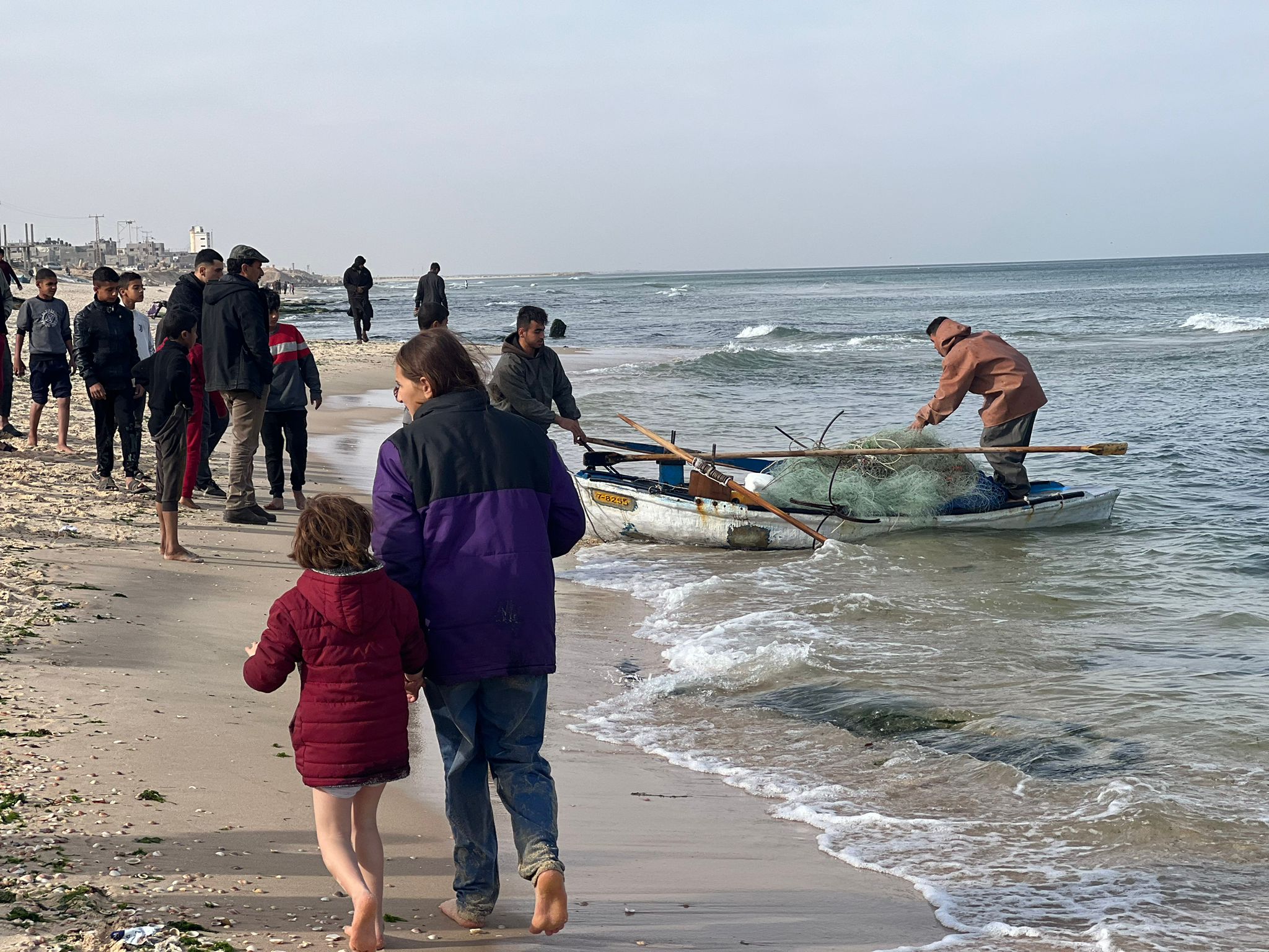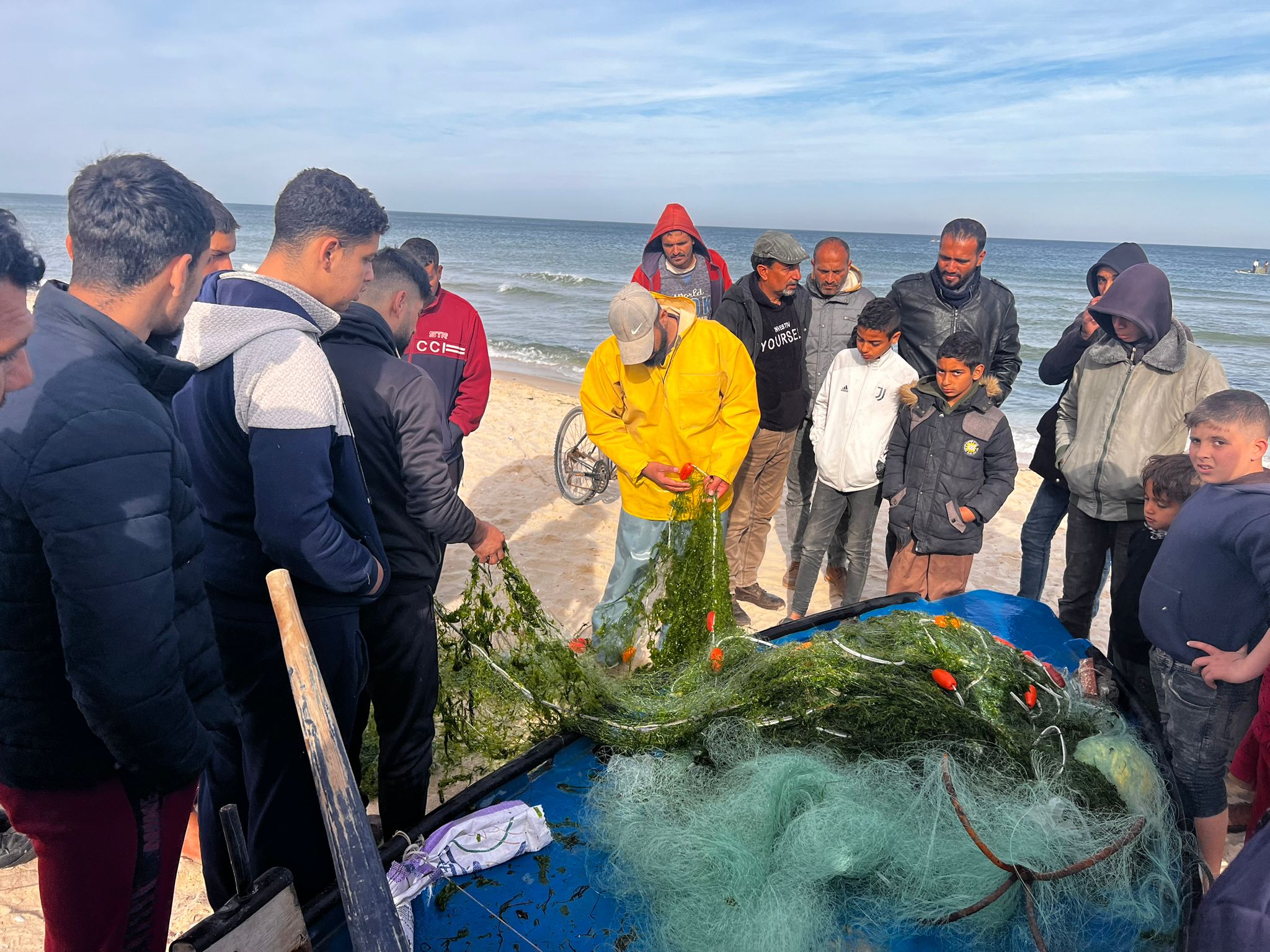 But these two brave fishermen in Rafah took their chances and entered the sea. They couldn’t go far, but returned with some fish, enough to start a bidding war between hungry refugees.