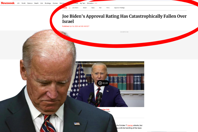 “Overall, last month’s survey saw Biden’s approval rating on Israel slump from plus 6 in December to –9 points,” Newsweek noted.