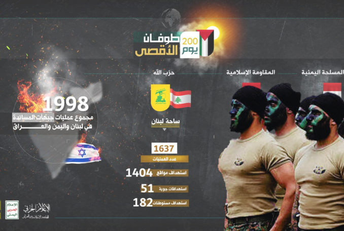 Marking 200 days since the beginning of Israel’s genocidal assault on Gaza, Hezbollah released an infographic which broke down the number of attacks it had carried out against the Israeli regime.