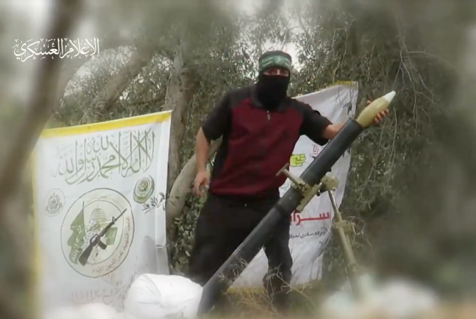 “Al-Qassam Brigades bombard a command and observation site east of the city of Jabaliya in the northern Gaza Strip with mortar shells.