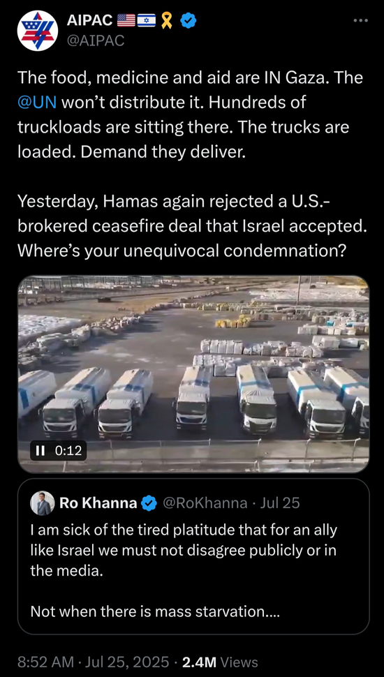 They are awaiting entry with aid while the Gaza Humanitarian Foundation puts on a show of distributing aid in four locations, when there were hundreds before. This concentrates the population in a small area and Palestinians are regularly shot and attacked by IDF soldiers on their way to the distribution sites, and GHF security personnel shoot them at the sites themselves. Warning shots don’t kill people.