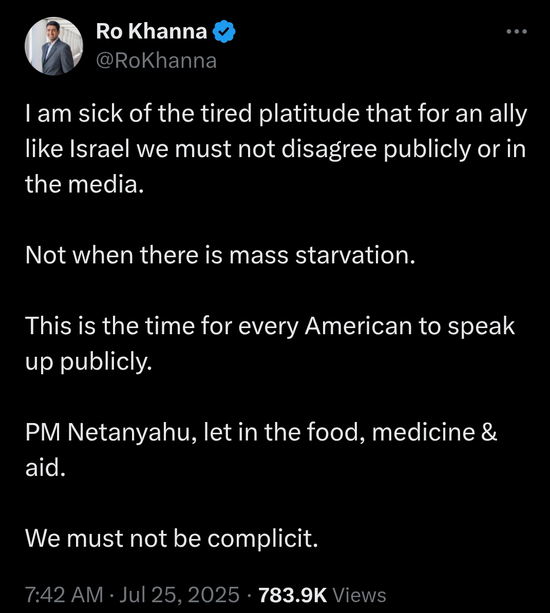 Marjorie isn’t the only representative to call out Israel. Rep. Ro Khanna had something to say: