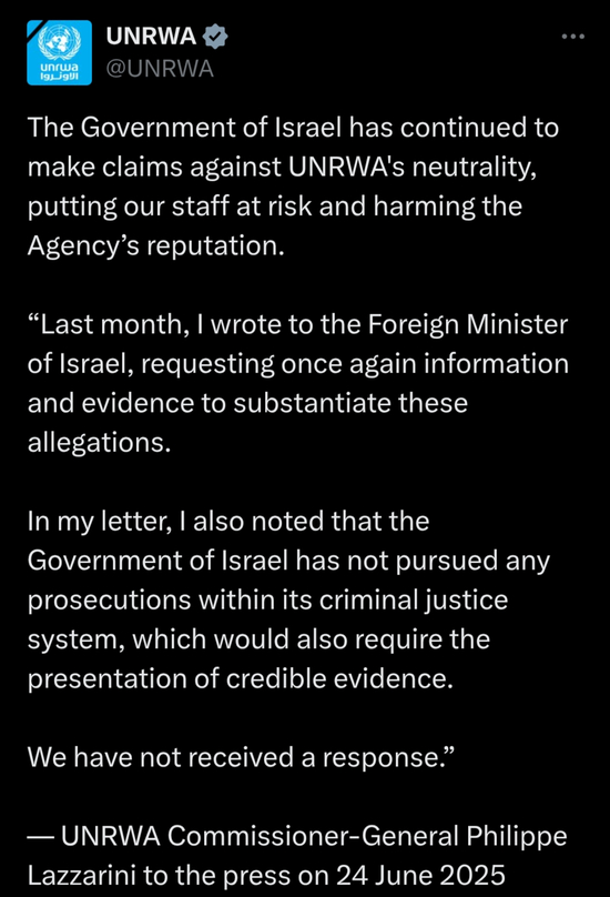 UNRWA, the U.N. Relief Works Agency for Palestine Refugees is still being blocked by accusations, not facts.