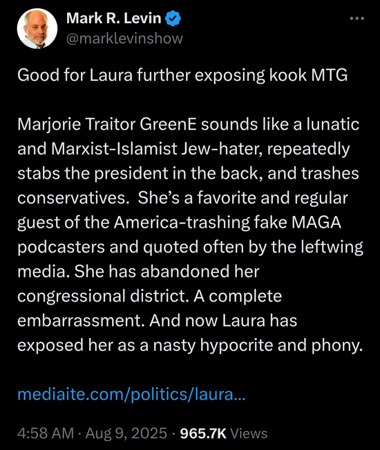 On Aug. 9th, Marjorie got into a feud started by Mark Levin.